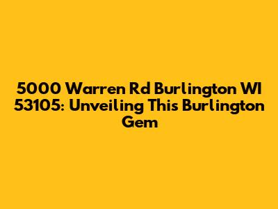 Alright, guys, let's dive into everything you need to know about 5000 Warren Rd, Burlington, WI 53105. Whether you're curious about this specific address, thinking of moving to the area, or just doing some good ol' property research, we've got you covered. This isn't just some random spot on the map; it's a place with potential, surrounded by the charm and appeal of Burlington, Wisconsin. We’re going to explore every nook and cranny of what makes this location tick, from its geographical advantages to the lifestyle perks it offers. So, buckle up and let's get started on this informational journey. We'll cover the location itself, what makes Burlington a great place to live, and how you can make the most of what this area has to offer. Let's get into it!
