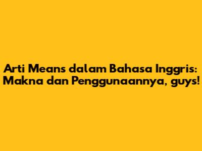 Seringkali kita mendengar kata 'means' dalam percakapan bahasa Inggris, baik itu dalam film, lagu, atau saat ngobrol sama native speaker. Tapi, tahukah kamu apa sebenarnya arti 'means' dan bagaimana cara menggunakannya dengan tepat? Nah, di artikel ini, kita akan kupas tuntas semua tentang 'means', biar kamu makin pede ngomong bahasa Inggris. Siap?