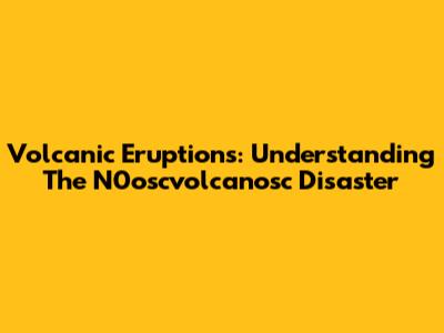 Volcanic Eruptions: Understanding The N0oscvolcanosc Disaster