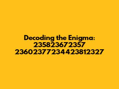 Decoding seemingly random strings like 235823672357 23602377234423812327 can be a challenging but rewarding endeavor. By understanding the potential origins, analyzing the string, and using practical decoding techniques, you can unlock the secrets hidden within these numerical mysteries. So, the next time you encounter a string of characters that seems meaningless, don't be intimidated. Embrace the enigma and embark on a journey of discovery. Who knows what you might find?