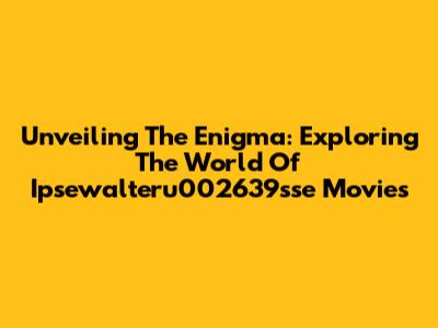 Unveiling The Enigma: Exploring The World Of Ipsewalteru002639sse Movies