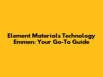 Hey guys! Let's dive into everything you need to know about Element Materials Technology in Emmen. If you're dealing with material testing, inspection, or certification, knowing the ins and outs of this facility can seriously streamline your projects. This guide will cover what Element Materials Technology Emmen does, why it's important, and how you can make the most of their services. So, buckle up, and let's get started!