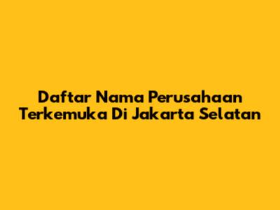 Daftar Nama Perusahaan Terkemuka Di Jakarta Selatan