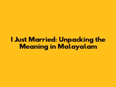 I Just Married: What It Means In Malayalam