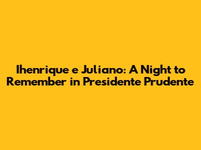 Hey music lovers! Get ready to dive into the electrifying world of Ihenrique e Juliano, the dynamic duo who's been setting the Brazilian Sertanejo scene on fire. Their upcoming show in Presidente Prudente is shaping up to be THE event of the year, a night filled with unforgettable melodies, passionate performances, and a whole lot of heart. If you're a fan of great music, high energy, and a good time, this is one show you absolutely cannot miss! We're talking about a concert experience that will leave you buzzing for days, a chance to sing along to your favorite hits, and create memories that will last a lifetime. So, let's get down to the details, shall we? From the venue to the setlist, we'll cover everything you need to know to make the most of this incredible musical journey.