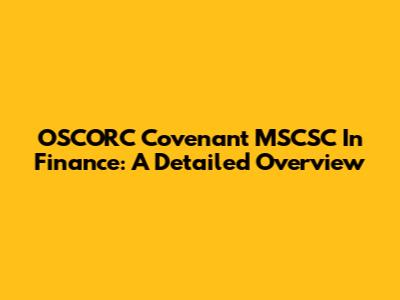 OSCORC Covenant MSCSC In Finance: A Detailed Overview
