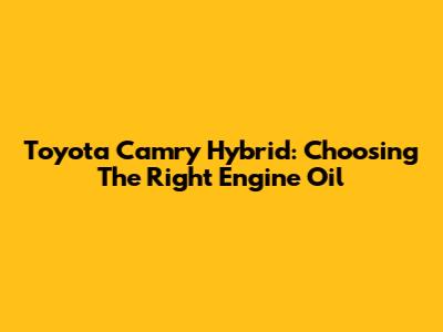 Toyota Camry Hybrid: Choosing The Right Engine Oil