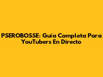 PSEROBOSSE: Guía Completa Para YouTubers En Directo