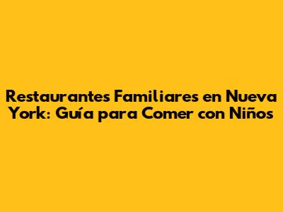 Restaurantes Familiares En Nueva York: Guía Para Comer Con Niños
