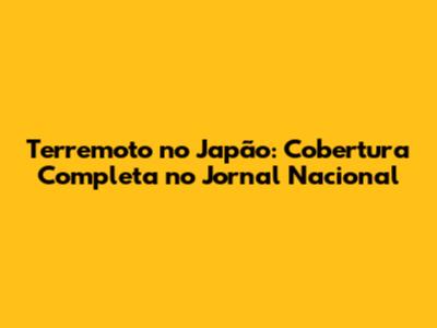 O Jornal Nacional tem mantido o público brasileiro informado sobre os recentes eventos sísmicos no Japão. A cobertura detalhada e abrangente do telejornal oferece uma visão clara da magnitude dos tremores, os impactos nas comunidades locais e os esforços de resposta em andamento. Acompanhe conosco os principais pontos dessa cobertura essencial.