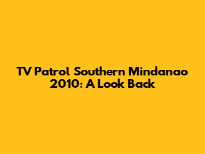 Hey guys! Let's take a trip down memory lane and revisit TV Patrol Southern Mindanao from the year 2010. This was a crucial period, filled with significant events that shaped the region. Understanding the news and happenings from that time gives us valuable insights into the progress and changes that have occurred since then. So, buckle up as we dive into the key stories and highlights that TV Patrol Southern Mindanao covered back in 2010.